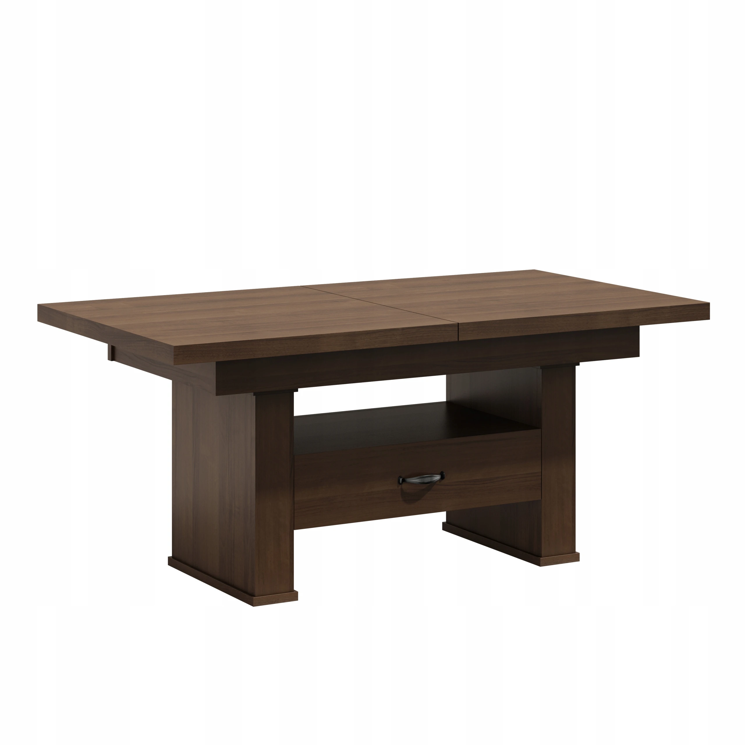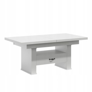 Oferujemy Państwu wysokiej jakości ławo - stół zaprojektowany z myślą o kompleksowym wykorzystaniu powierzchni małych pokoi. Ława posiada funkcję rozkładania na prowadnicy linkowej ciągnąc za jedną połówkę blatu druga rozciąga się samoczynnie oraz podnoszenia.na podnośnik czteropunktowy .Sprawdzi się zarówno jako stolik kawowy jak i stół dla całej rodziny w czasie niedzielnego obiadu.Ława jest wykonana z płyty obustronnie laminowanej. Materiał ten charakteryzuje się zwiększoną odpornością na uszkodzenia mechaniczne, zarysowania, oddziaływanie wysokich temperatur. Nie zaszkodzi mu gorąca szklanka postawiona bezpośrednio na blacie.Krawędzie blatu wykończone są obrzeżem PCV zabezpieczającym elementy ławy przed uszkodzeniami mechanicznymi.Wkładki nie mieszczą się pod blatem chowamy osobno.