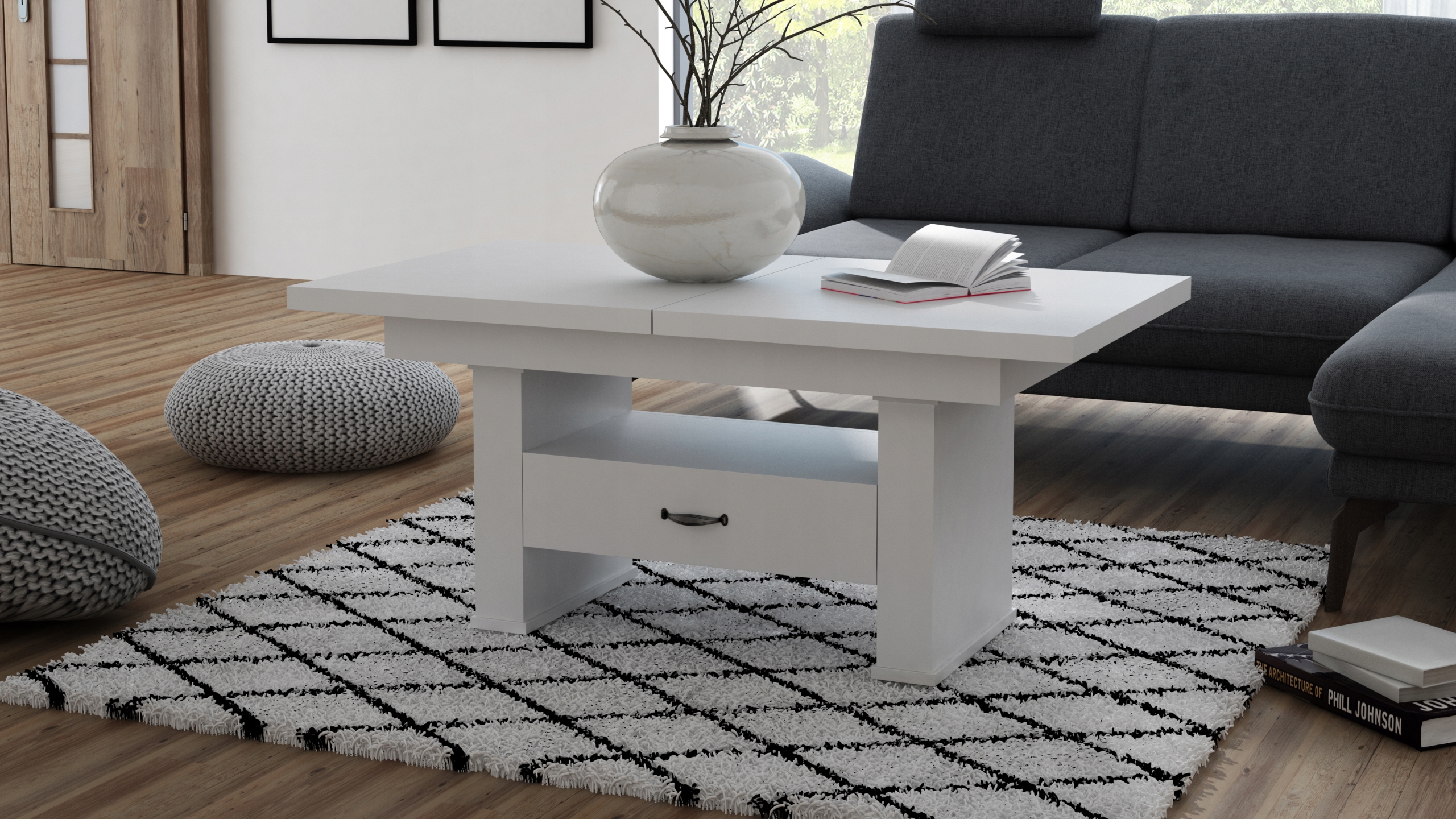 ŁAWA,ŁAWOSTÓŁ ROZKŁADANY Z SZUFLADĄ BIAŁY MAT