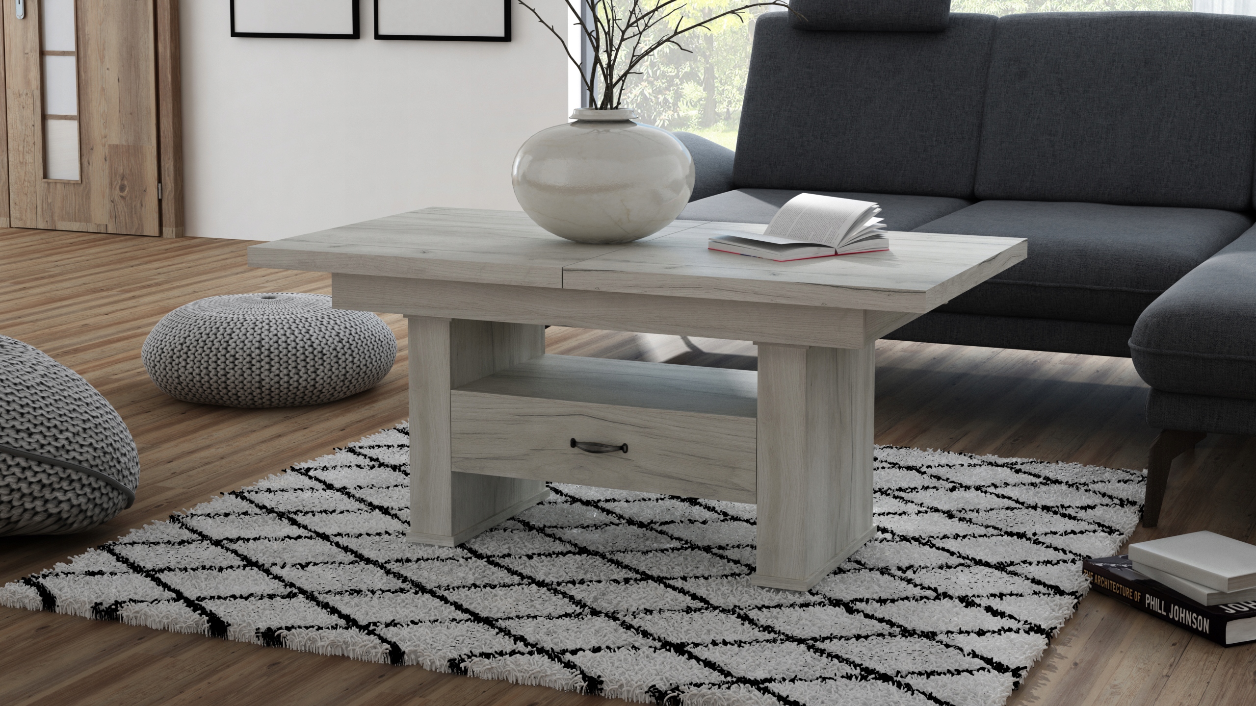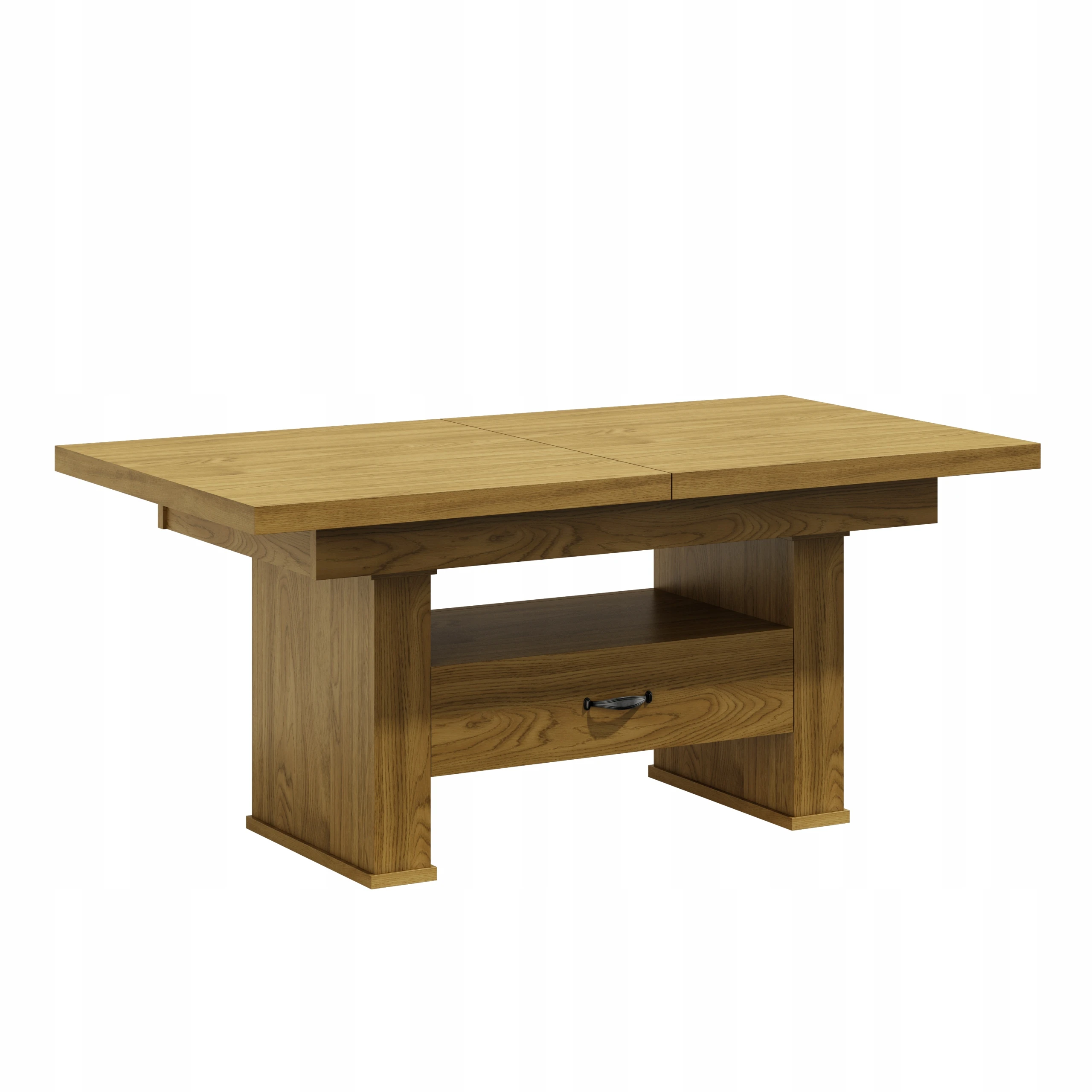 Oferujemy Państwu wysokiej jakości ławo - stół zaprojektowany z myślą o kompleksowym wykorzystaniu powierzchni małych pokoi. Ława posiada funkcję rozkładania na prowadnicy linkowej ciągnąc za jedną połówkę blatu druga rozciąga się samoczynnie oraz podnoszenia.na podnośnik czteropunktowy .Sprawdzi się zarówno jako stolik kawowy jak i stół dla całej rodziny w czasie niedzielnego obiadu.Ława jest wykonana z płyty obustronnie laminowanej. Materiał ten charakteryzuje się zwiększoną odpornością na uszkodzenia mechaniczne, zarysowania, oddziaływanie wysokich temperatur. Nie zaszkodzi mu gorąca szklanka postawiona bezpośrednio na blacie.Krawędzie blatu wykończone są obrzeżem PCV zabezpieczającym elementy ławy przed uszkodzeniami mechanicznymi.Wkładki nie mieszczą się pod blatem chowamy osobno.