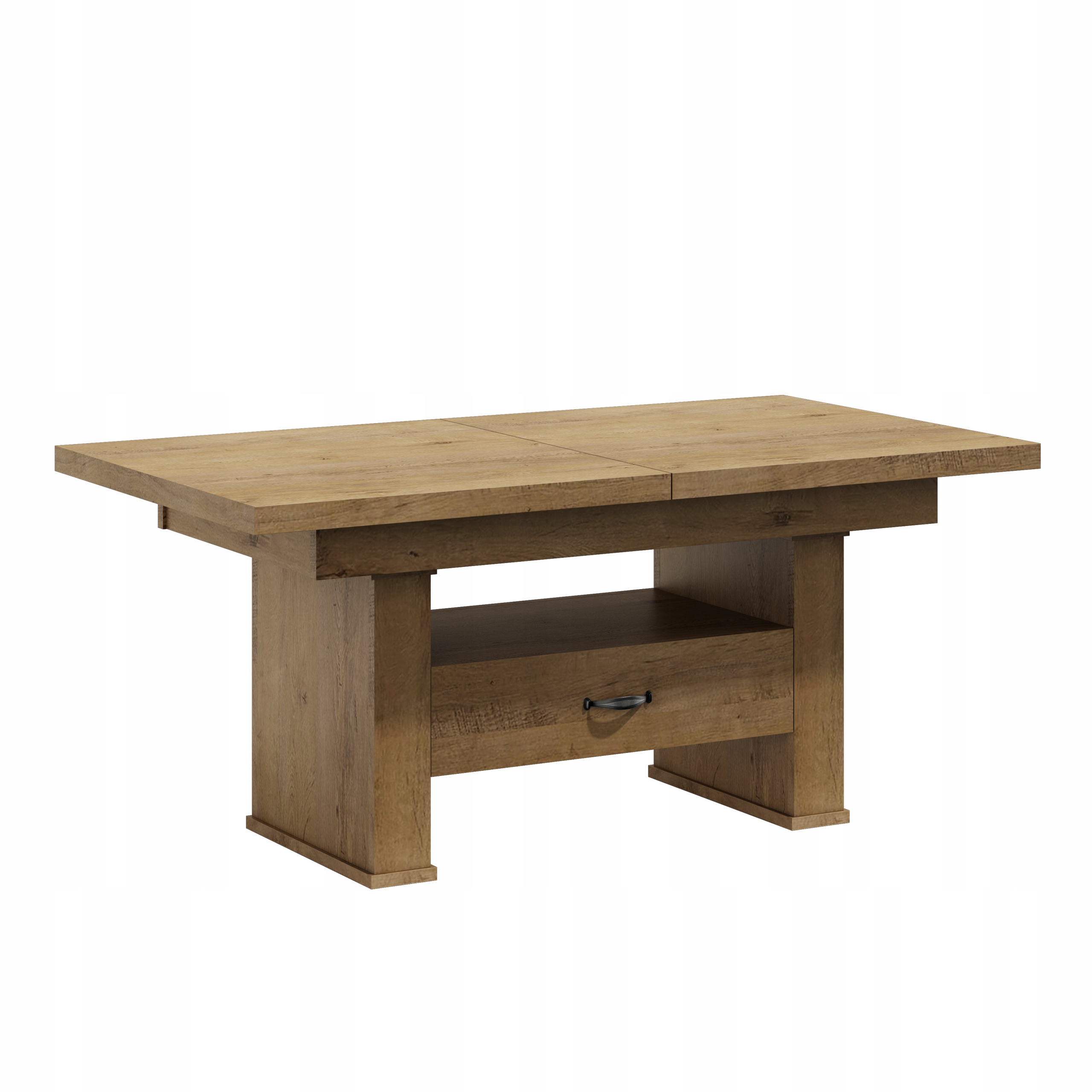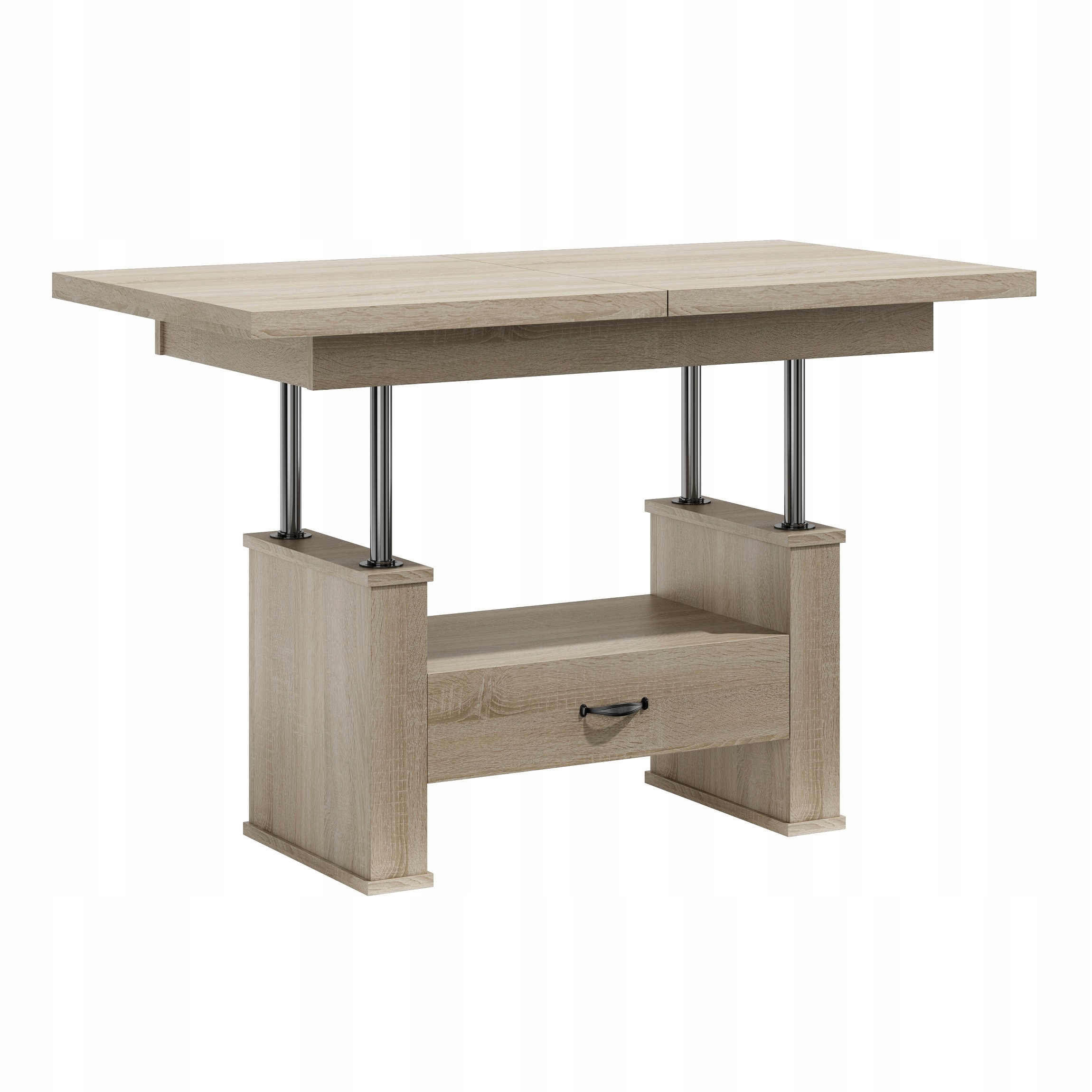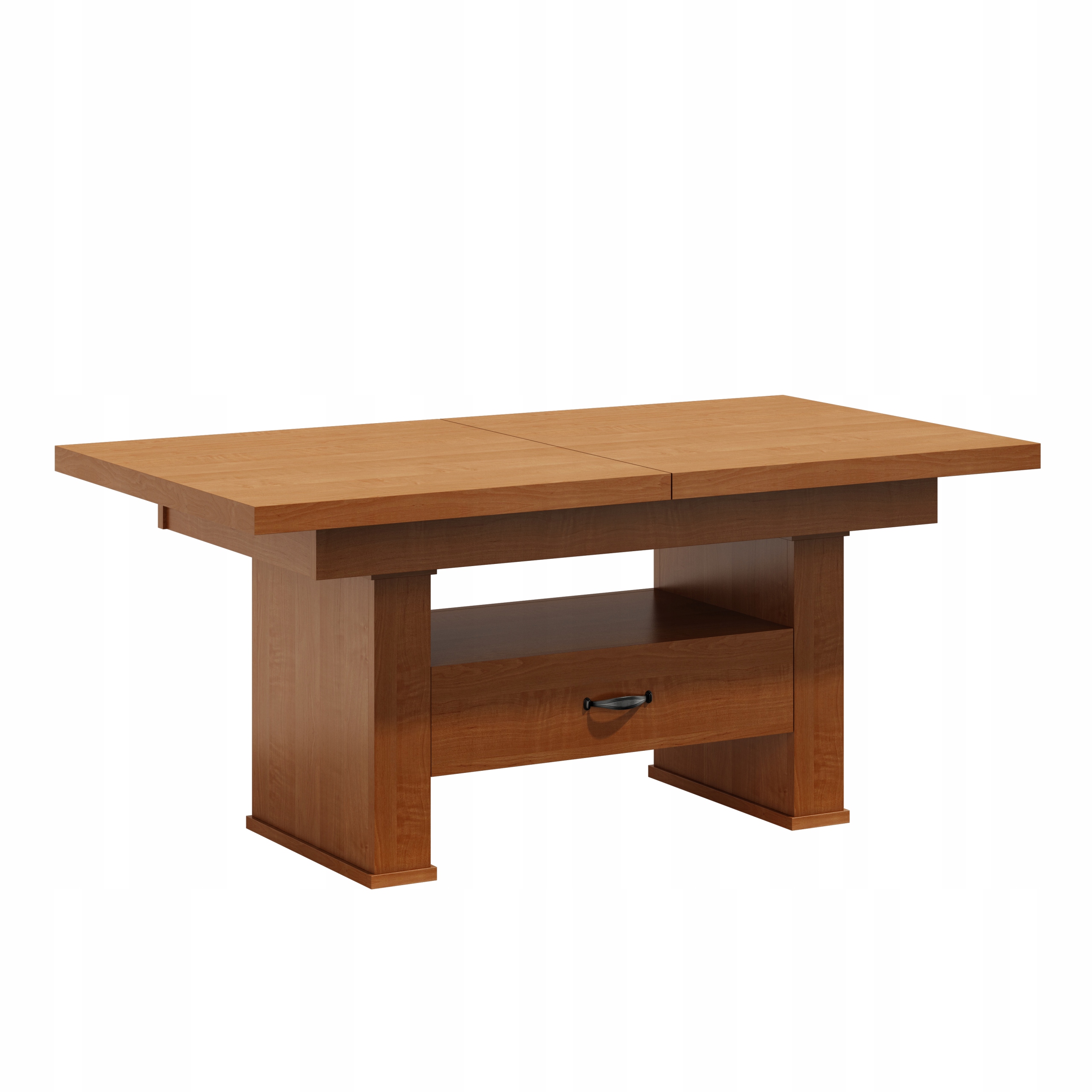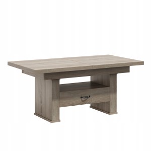 Oferujemy Państwu wysokiej jakości ławo - stół zaprojektowany z myślą o kompleksowym wykorzystaniu powierzchni małych pokoi. Ława posiada funkcję rozkładania na prowadnicy linkowej ciągnąc za jedną połówkę blatu druga rozciąga się samoczynnie oraz podnoszenia.na podnośnik czteropunktowy .Sprawdzi się zarówno jako stolik kawowy jak i stół dla całej rodziny w czasie niedzielnego obiadu.Ława jest wykonana z płyty obustronnie laminowanej. Materiał ten charakteryzuje się zwiększoną odpornością na uszkodzenia mechaniczne, zarysowania, oddziaływanie wysokich temperatur. Nie zaszkodzi mu gorąca szklanka postawiona bezpośrednio na blacie.Krawędzie blatu wykończone są obrzeżem PCV zabezpieczającym elementy ławy przed uszkodzeniami mechanicznymi.Wkładki nie mieszczą się pod blatem chowamy osobno.