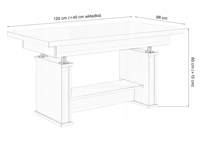 40 CM WSTAWKA POZWALA NA ZWIĘKSZENIE WYMIARU BLATU DO 165 CM