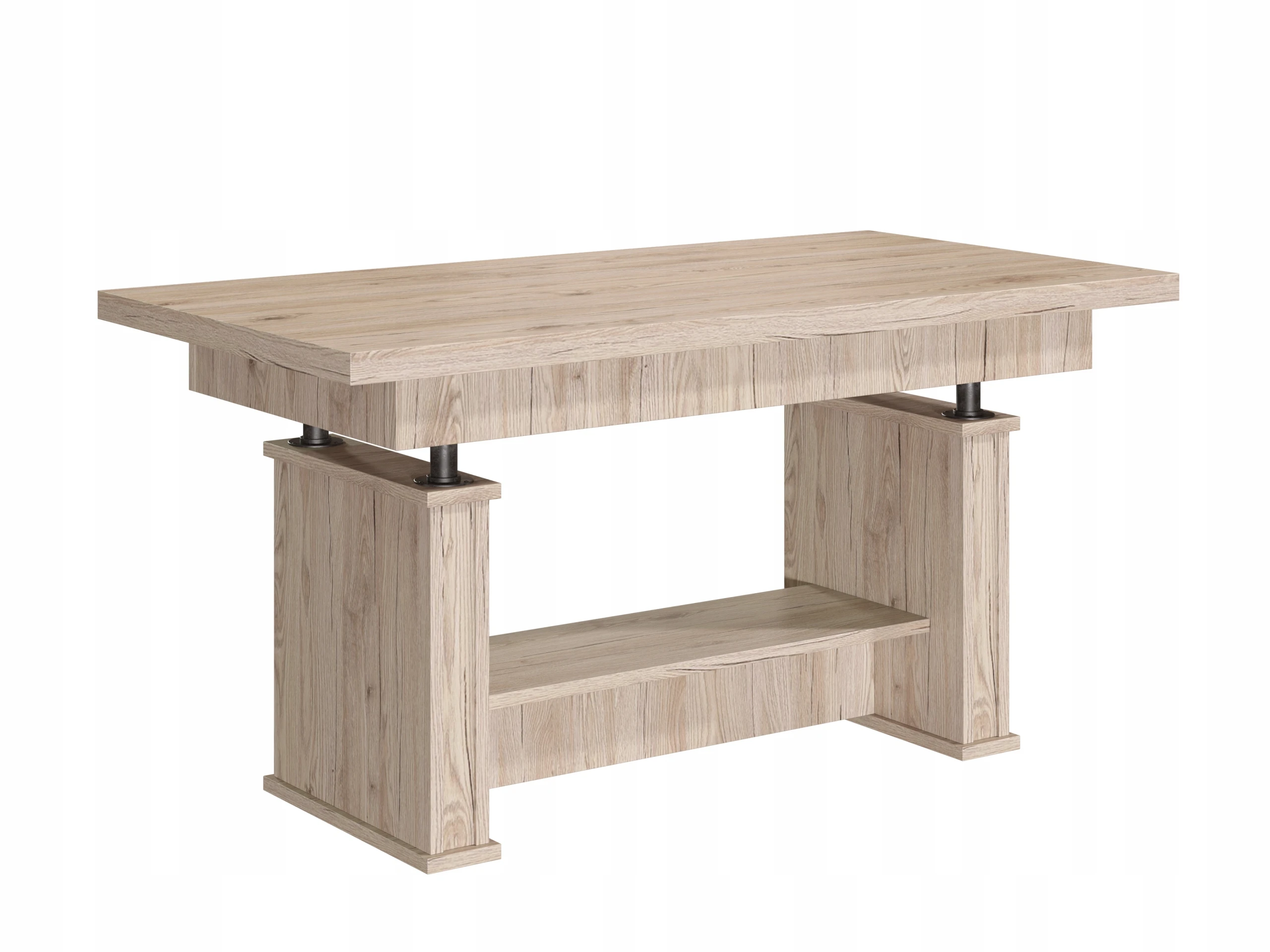 Oferujemy Państwu wysokiej jakości ławo - stół zaprojektowany z myślą o kompleksowym wykorzystaniu powierzchni małych pokoi. Ława posiada funkcję rozkładania i podnoszenia. Sprawdzi się zarówno jako stolik kawowy jak i stół dla całej rodziny w czasie niedzielnego obiadu.Ława jest wykonana z płyty obustronnie laminowanej o grubości 18mm. Blat pogrubiony do 36mm. Materiał ten charakteryzuje się zwiększoną odpornością na uszkodzenia mechaniczne, zarysowania, oddziaływanie wysokich temperatur. Nie zaszkodzi mu gorąca szklanka postawiona bezpośrednio na blacie.Krawędzie blatu wykończone są obrzeżem PCV zabezpieczającym elementy ławy przed uszkodzeniami mechanicznymi.
