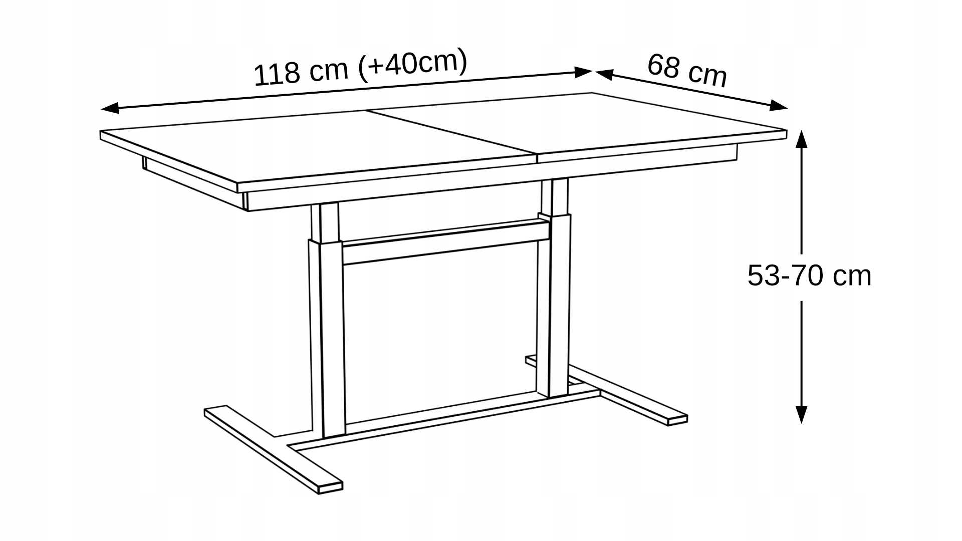 Do rozsuwania blatu zastosowano prowadnice synchroniczne z hamulcem (przy rozsuwaniu jednej strony, druga część blatu rozsuwa się równocześnie).