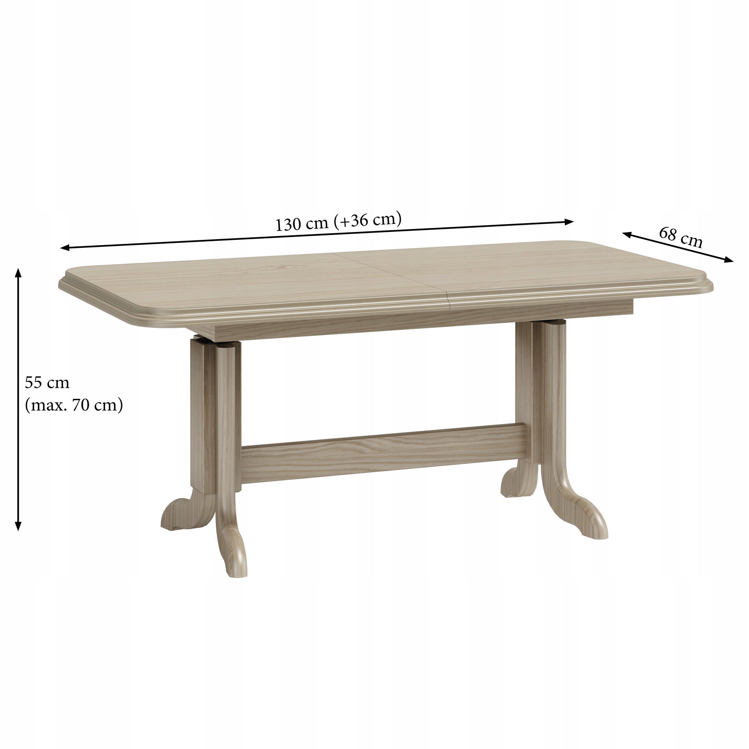 - Rozsuwanie blatu umożliwiają metalowe kulowe prowadnice które się nie zacinają podczas rozkładania. Podnośnik manualny blatu jest wsadem metalowym zamontowanym w nodze
