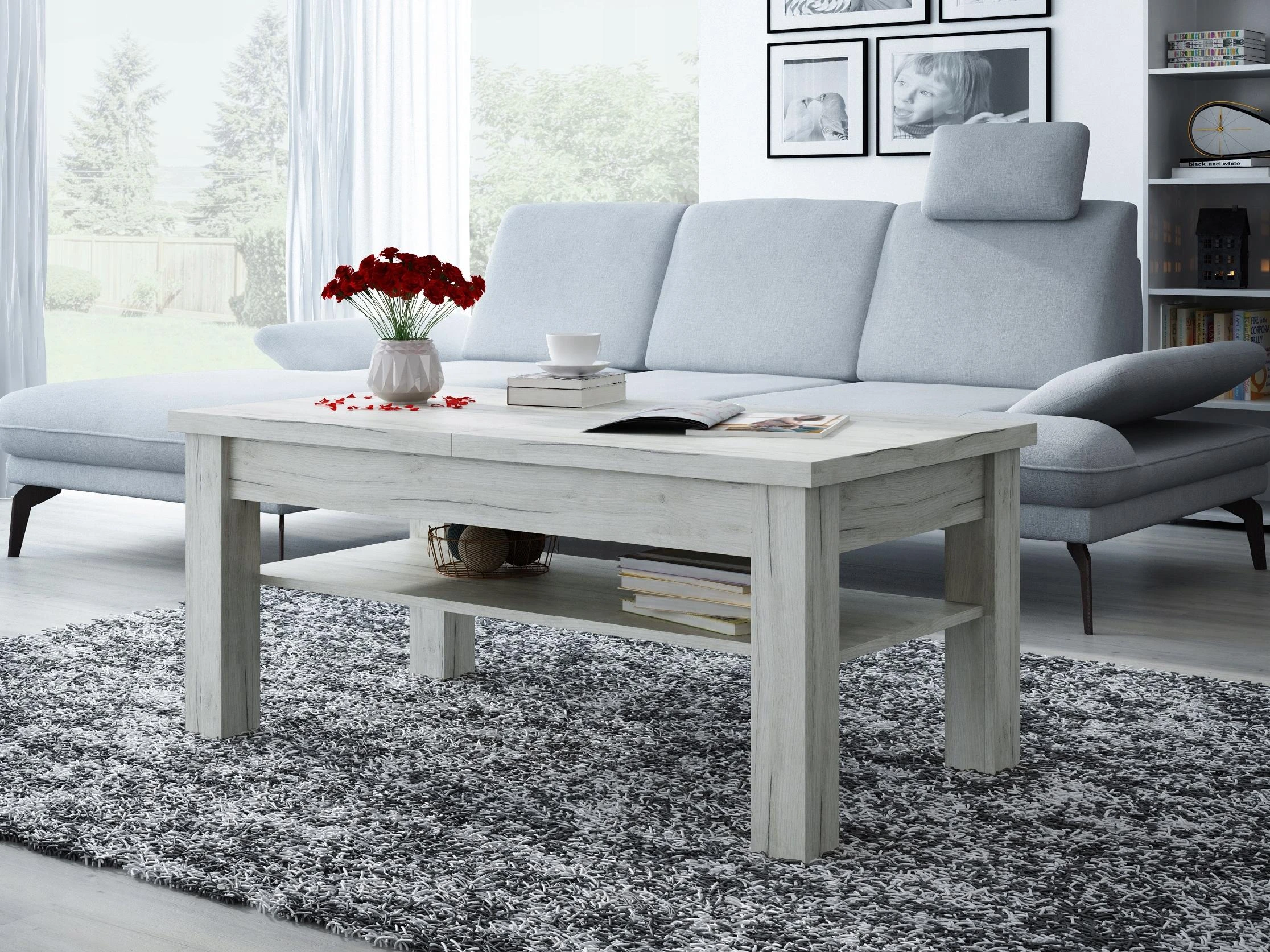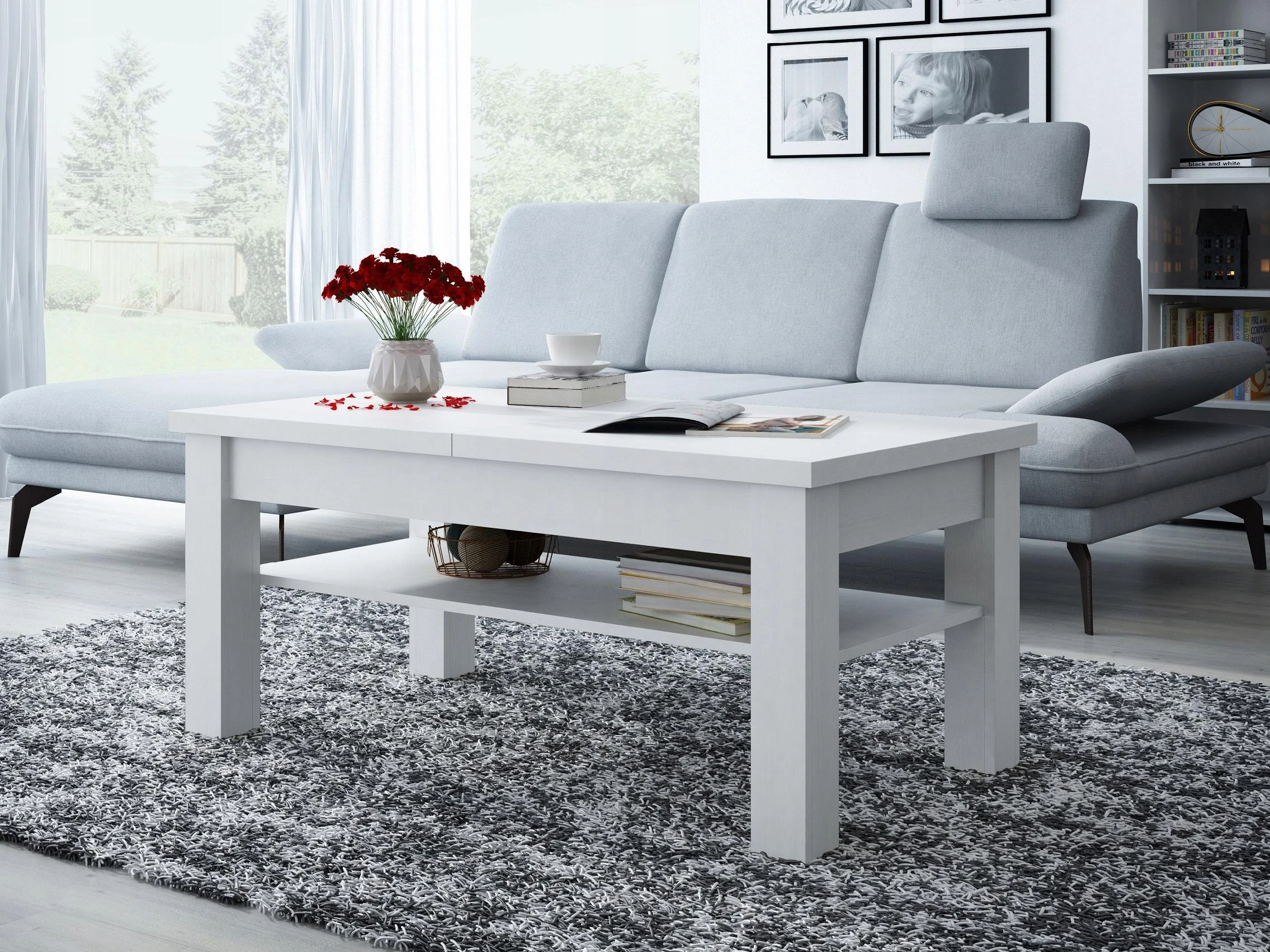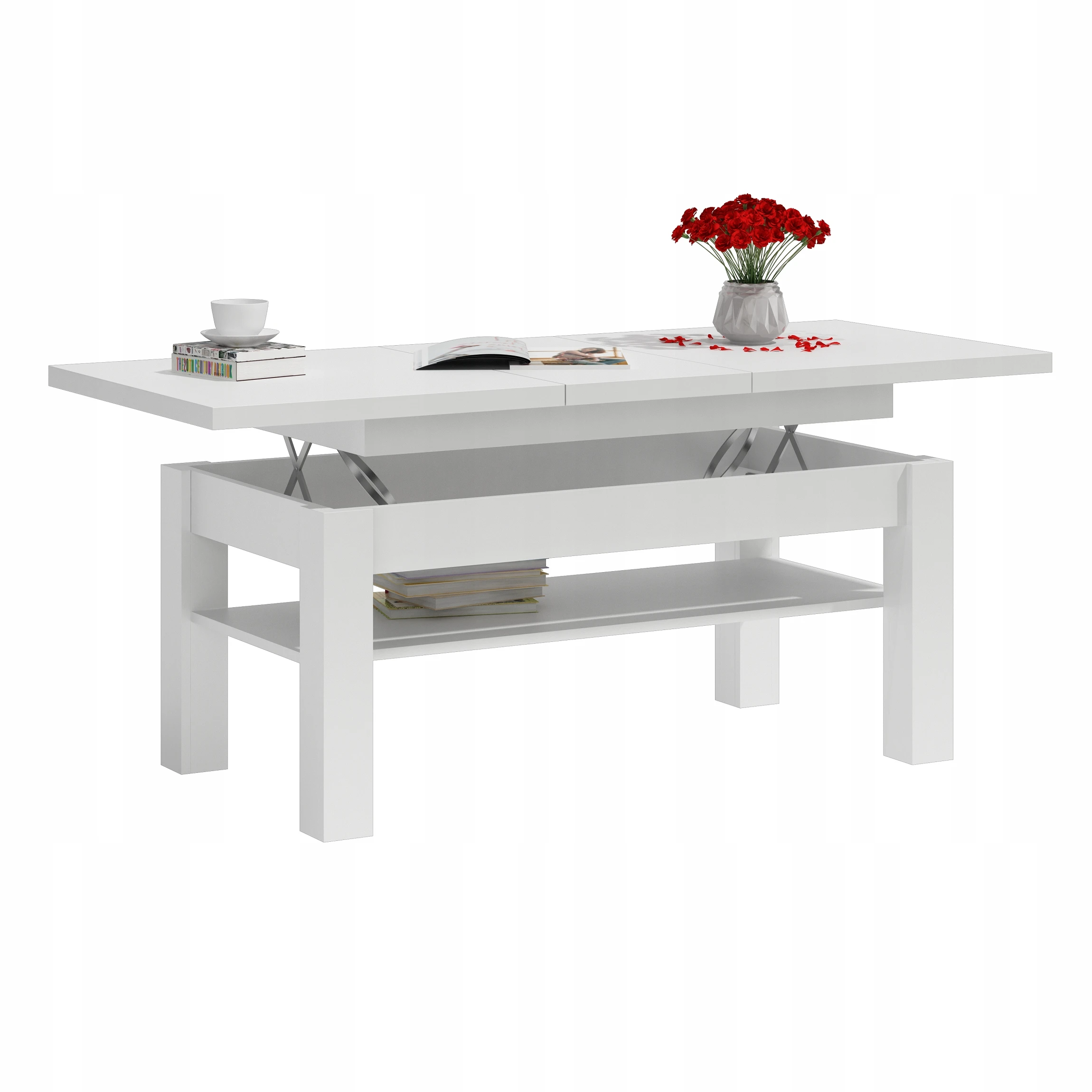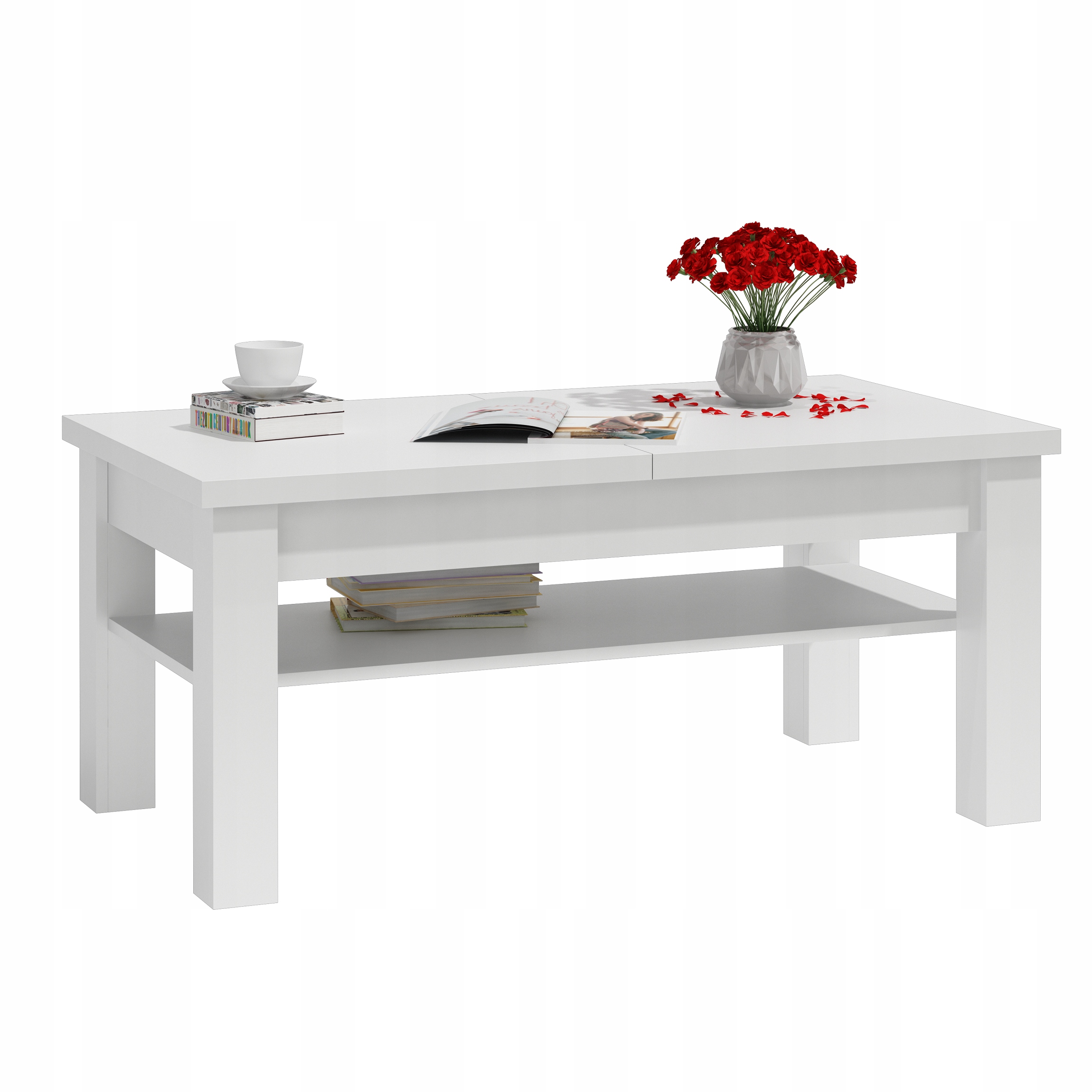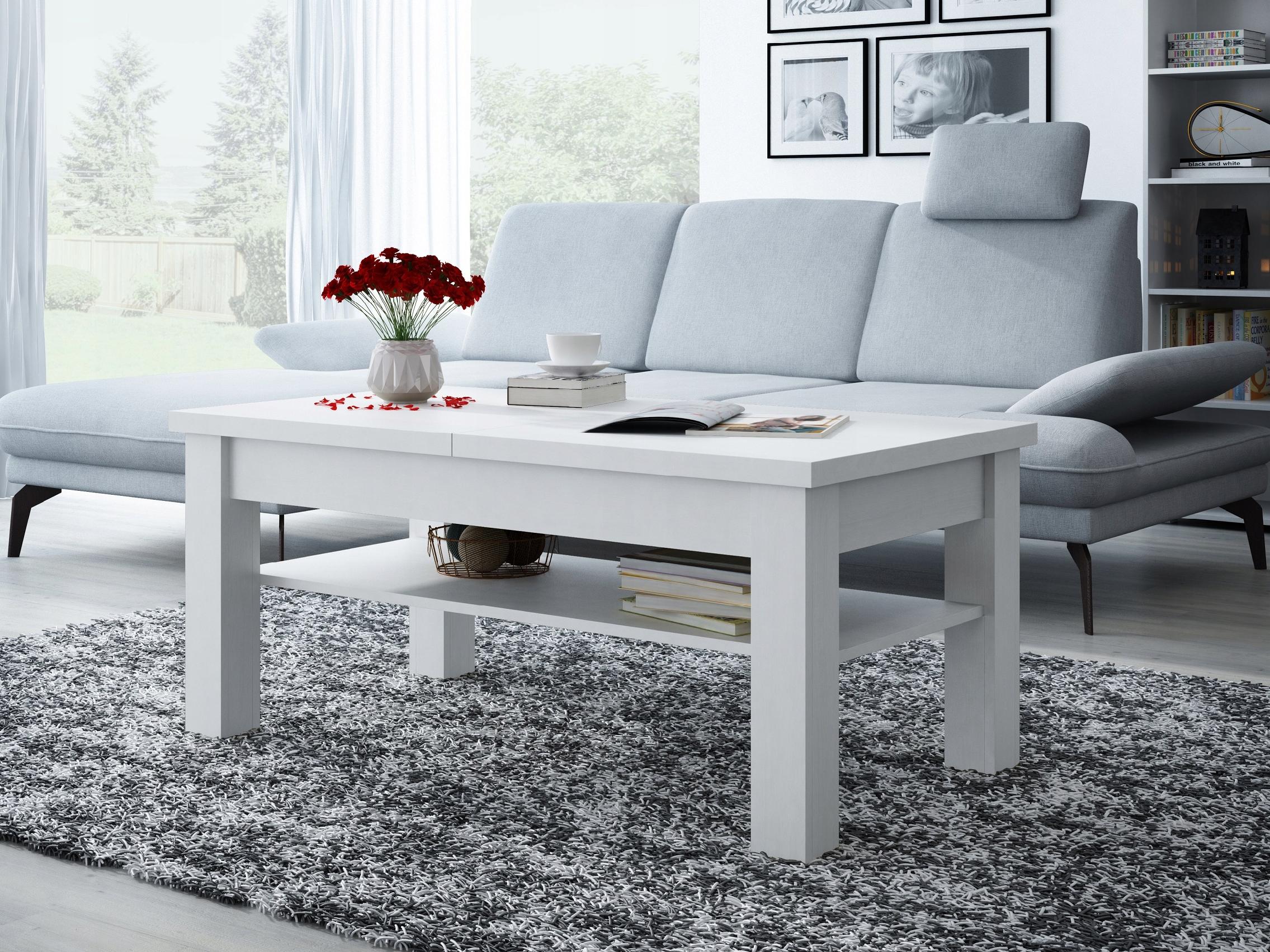ŁAWA ŁAWOSTÓŁ STOLIK ROZKŁADANA Z PÓŁKĄ BIAŁY MAT