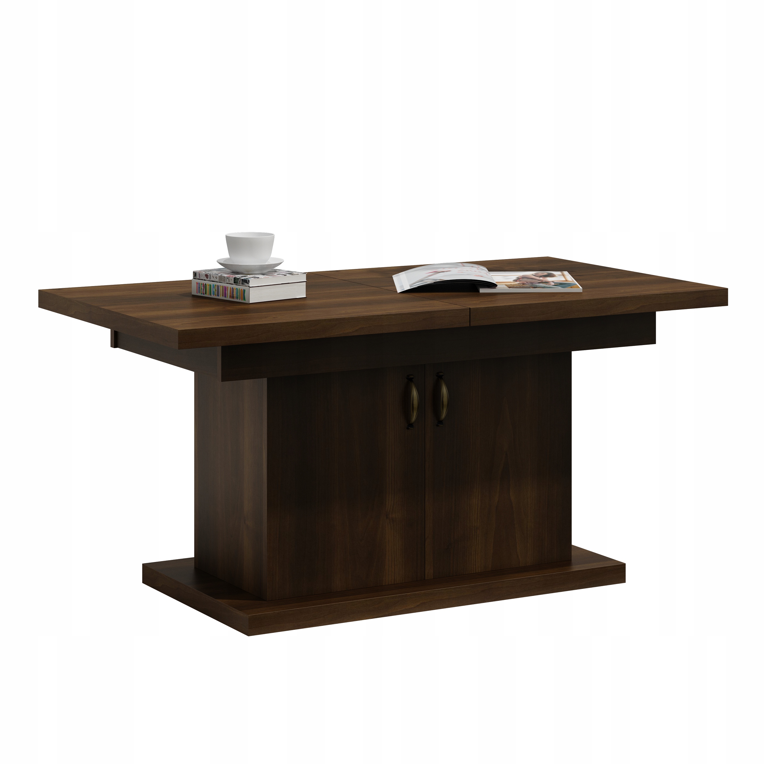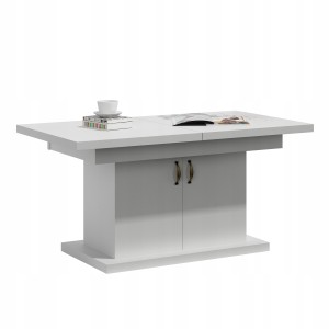 Stół ten został zaprojektowany w taki sposób, aby być jak najbardziej funkcjonalnym meblem. Blat stołu został wykonany z odpornego na wilgoć materiału. Stół jest oczywiście podnoszony i rozkładany na prowadnicy linkowej ciągnąc za jedną połówkę blatu druga rozciąga się samoczynnie. Blat jest dzielony na dwie części, a w środek można włożyć tzw. 2 wkładki, które zwiększają długość stołu o 76 cm.Ławostół wykonany z płyty 18mm.Brzeg blatu pogrubiany do 36mm.Wkładki nie mieszczą się pod blatem chowamy osobno.