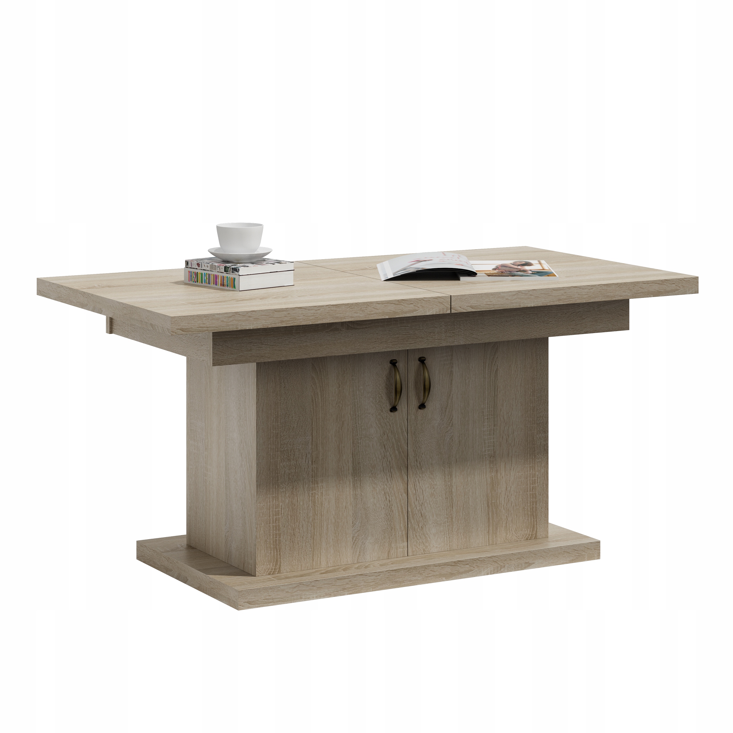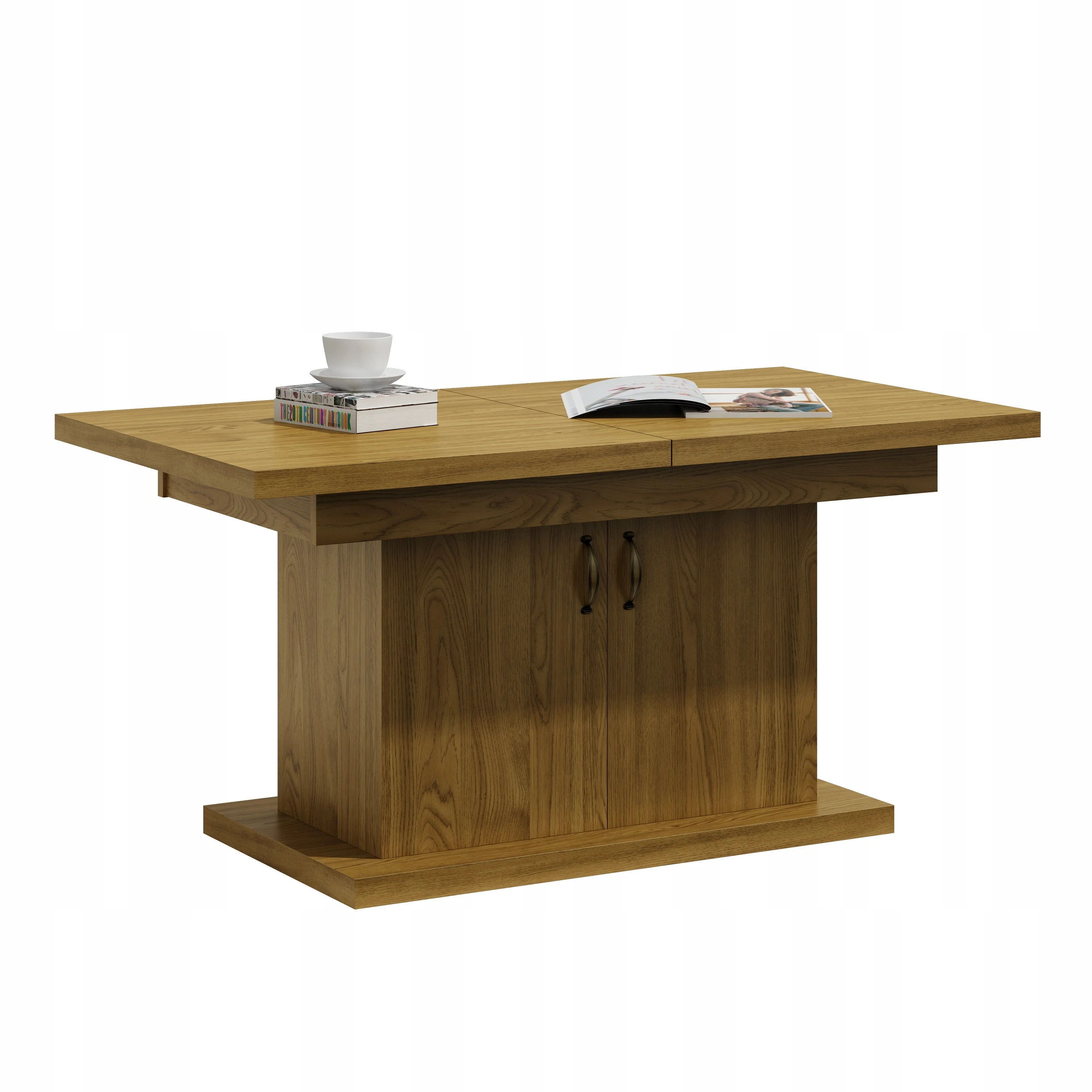 Stół ten został zaprojektowany w taki sposób, aby być jak najbardziej funkcjonalnym meblem. Blat stołu został wykonany z odpornego na wilgoć materiału. Stół jest oczywiście podnoszony i rozkładany na prowadnicy linkowej ciągnąc za jedną połówkę blatu druga rozciąga się samoczynnie. Blat jest dzielony na dwie części, a w środek można włożyć tzw. 2 wkładki, które zwiększają długość stołu o 76 cm.Ławostół wykonany z płyty 18mm.Brzeg blatu pogrubiany do 36mm.Wkładki nie mieszczą się pod blatem chowamy osobno.