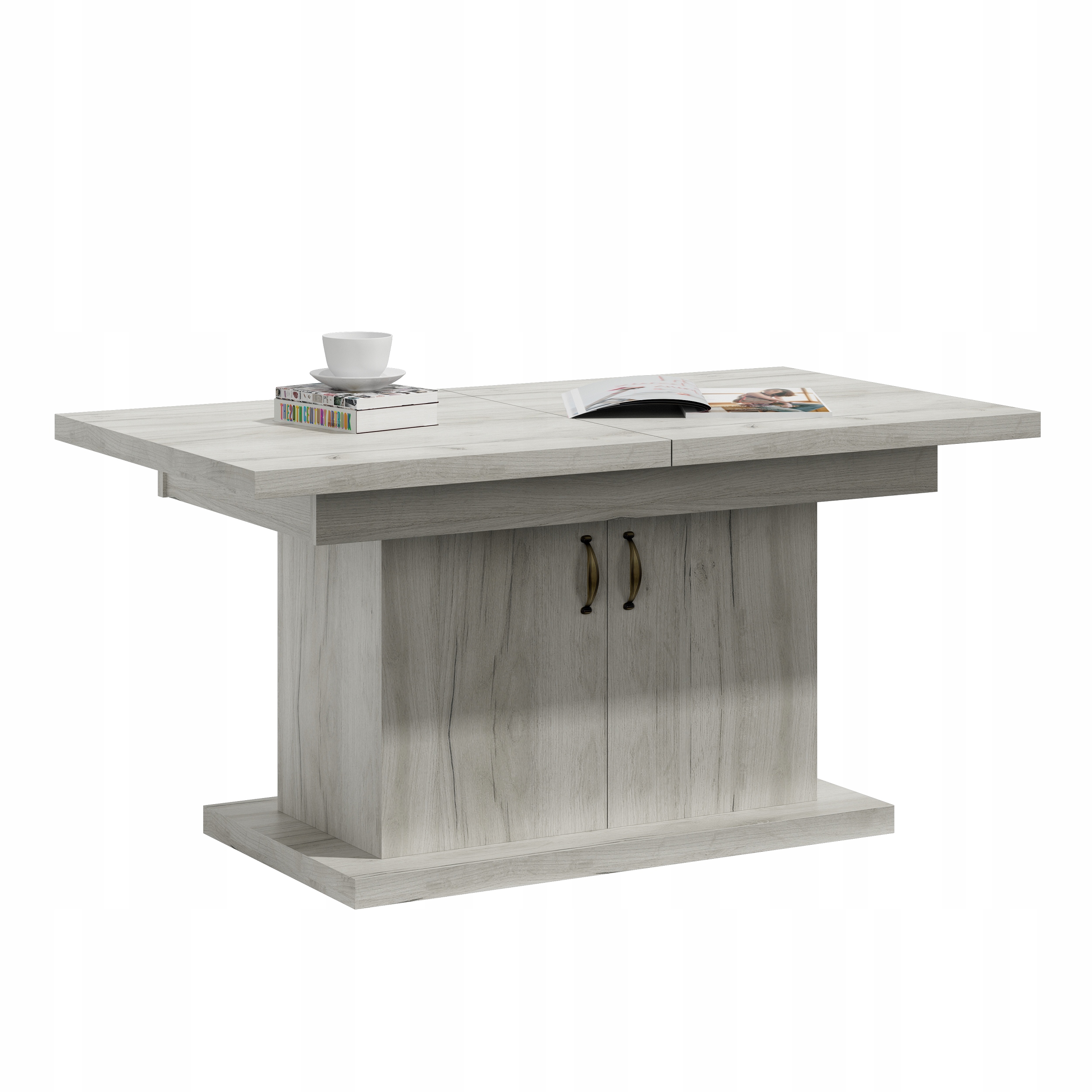 Stół ten został zaprojektowany w taki sposób, aby być jak najbardziej funkcjonalnym meblem. Blat stołu został wykonany z odpornego na wilgoć materiału. Stół jest oczywiście podnoszony i rozkładany na prowadnicy linkowej ciągnąc za jedną połówkę blatu druga rozciąga się samoczynnie. Blat jest dzielony na dwie części, a w środek można włożyć tzw. 2 wkładki, które zwiększają długość stołu o 76 cm.Ławostół wykonany z płyty 18mm.Brzeg blatu pogrubiany do 36mm.Wkładki nie mieszczą się pod blatem chowamy osobno.