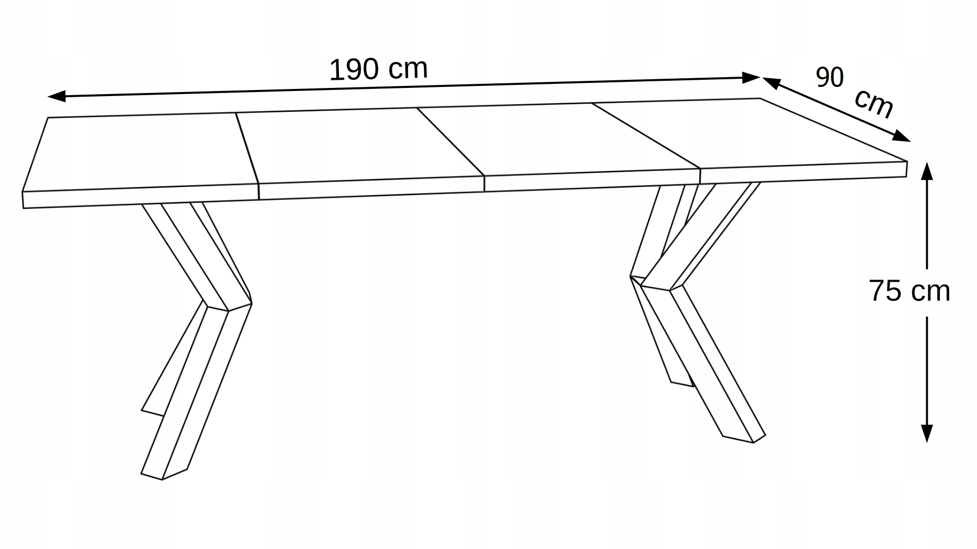 STÓŁ ROZKŁADANY 90 cm + 2 x 50 cm (KOLOR DĄB TRUFLA NOGA X)